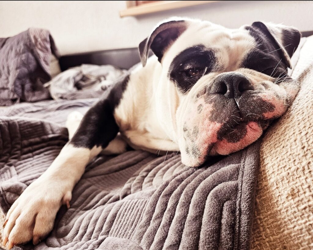 Schweren Herzens müssen wir uns nach 7 Jahren von unserer Bulldogge „Hope“ trennen. Sie ist verschmust, verspielt, aber stürmisch. Ihr Manko: sie mag keine anderen Hunde. Daher kann sie leider außerhalb vom Garten nicht mehr frei laufen. Außerdem hat sie ein bissl Hautprobleme, stören aber nicht weiters. Trennen müssen wir uns, weil meine Tochter immer mehr auf unseren Hund durch ihre Allergie reagiert. Und uns leider auch die Zeit mittlerweile fehlt, mit ihr grosse Runden zu drehen.
