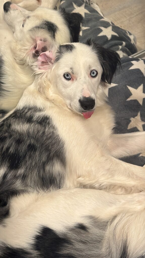Wir haben Samy im alter von vier Monaten aufgenommen und ihm ein stabiles Zuhause gegeben, nachdem er zweimal in kurzer Zeit den Besitzer gewechselt hatte. Er liebt es, in der Nähe seiner Familie zu sein und liebt Kinder – bei uns sind Chloé und Matteo seine absoluten Lieblingspersonen. Mit konsequenter, ruhiger Führung und kognitiver Auslastung (die er liebt!) entwickelt sich sein Vertrauen zusehends.