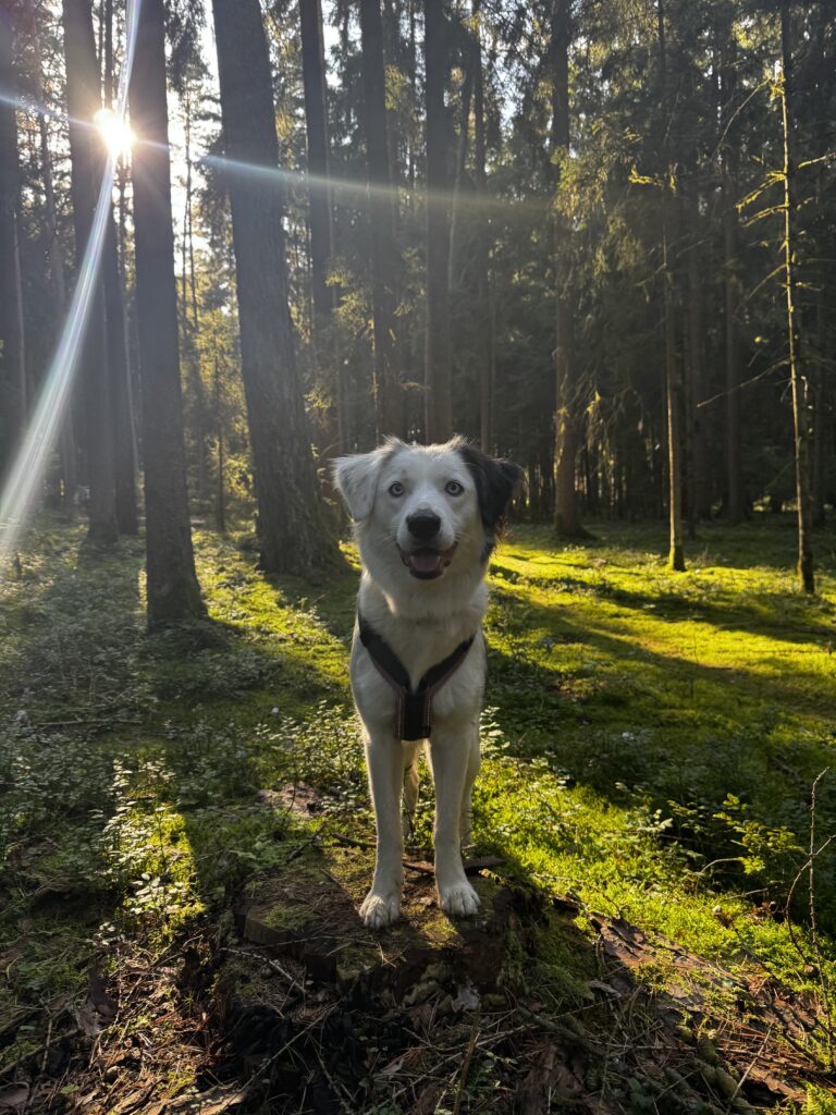 Wir haben Emma mit 15 Wochen aus schlechter Haltung übernommen. In ihrem früheren Zuhause wurde sie vom Zweithund der Familie gebissen. Diese Erfahrung prägt sie bis heute und erklärt auch ihre besonderen Bedürfnisse.