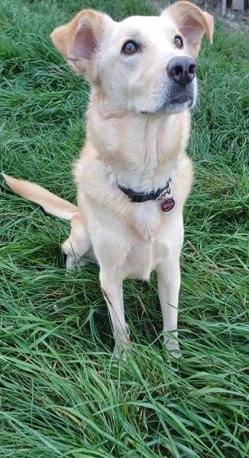 Kira ist eine semmelblonde, wunderschöne, powervolle, stattliche Hündin (ca. 60 cm). Die Hündin ist geimpft, gechipt und kastriert. Sie ist sehr verschmust und menschenbezogen, braucht aber eine klare, liebevolle Erziehung. Auch sollte man Freude an ausgiebiger Beschäftigung eines Hundes haben. Sie ist 6 Jahre alt (Oktober 2017 geboren). Der Papa ist ein Labrador (Arbeitslinie) und die Mutter ein Schäfer – Hütehundmix. Kira ist aufgrund des starken Jagdtriebs nicht ableinbar. Katzen und Kleintiere sollten nicht im neuen Zuhause sein. Mit anderen Hunden ist Kira teilweise verträglich. Momentan sind Hundebegegnungen bei Spaziergängen nicht so ganz einfach zu händeln. Über ihr Rudel und ihr Zuhause wacht sie gewissenhaft. Kira kommuniziert gerne und mit ihrer eindrucksvollen Stimme. Es kommt daher nur ein Haus mit sicher umzäuntem Garten in Frage. Kira kann eine wundervolle Begleiterin sein. Sie ist sehr aufgeschlossen und fährt gerne im Auto mit. Die Hündin versucht einerseits sehr zu gefallen, testet andererseits aber immer wieder Grenzen aus. Daher sollten auch keine Kinder im neuen Zuhause sein. Momentan lebt Kira bei einer Pflegestelle mit anderen Hunden zusammen. Das Pflegefrauchen ist froh, dass sie diesen eigentlich tollen Hund kennen lernen durfte, weiß gleichzeitig aber auch, dass sie dem Hund nicht gerecht werden kann. Nur an einem passenden Platz wird Kira ein Traumhund sein! Eine Vermittlung erfolgt nach positiver Platzkontrolle, Abgabevertrag und Zahlung einer Schutzgebühr.