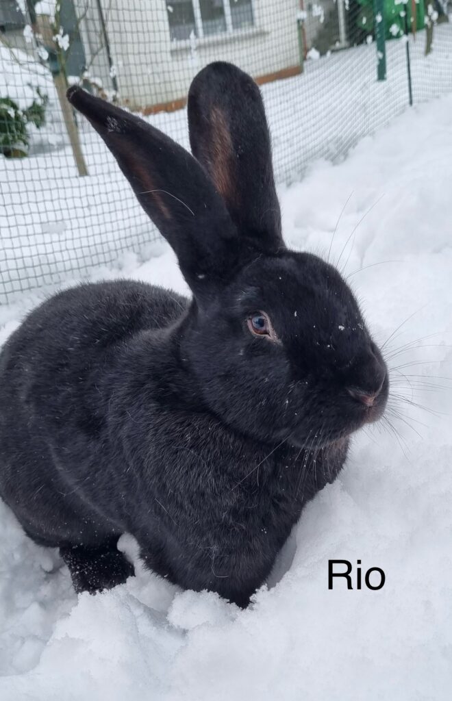 „Hallo Ihr Lieben, ich bin Momo, im Dezember 2020 geboren und wurde gemeinsam mit meiner Schwester Nala von einem Züchter abgekauft. Ich bin ein reinrassiges schwarzes Rex-Kaninchen und die Anführerin der Gruppe. Ich bin kerngesund und habe keinerlei Krankheiten. Nicht einmal so etwas wie Bauchschmerzen oder so kenne ich. Ich würde sagen, ich habe hier die Hosen an. Ich kann aber auch sehr verschmust sein. Gerne fordere ich auch meine Streicheleinheiten ein und stupse dich freundlich, wenn du zu mir in Stall kommst und freue mich, von dir gekrault zu werden.“