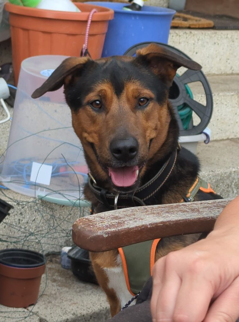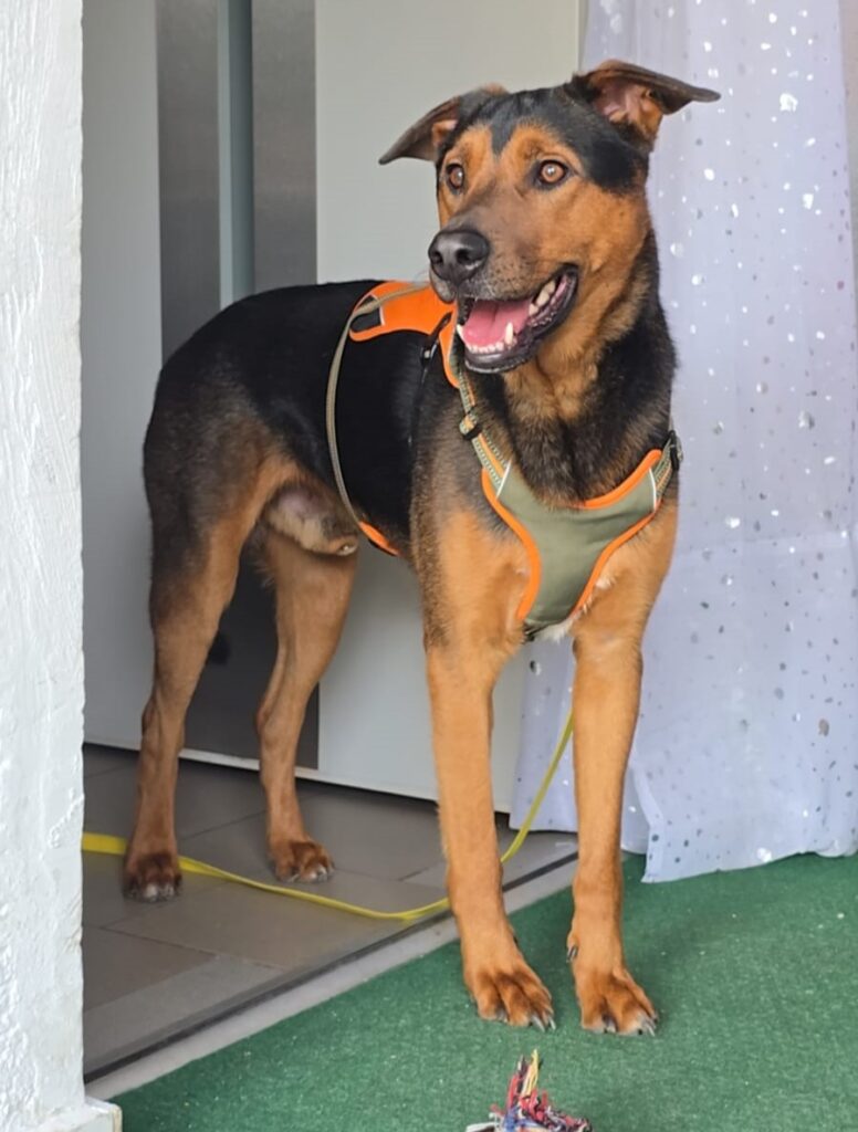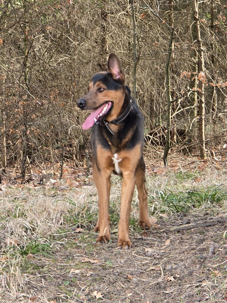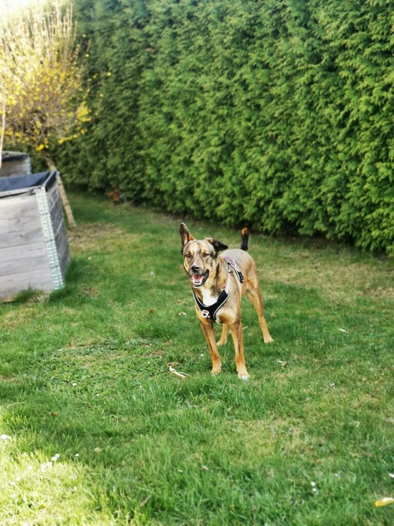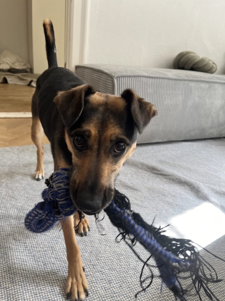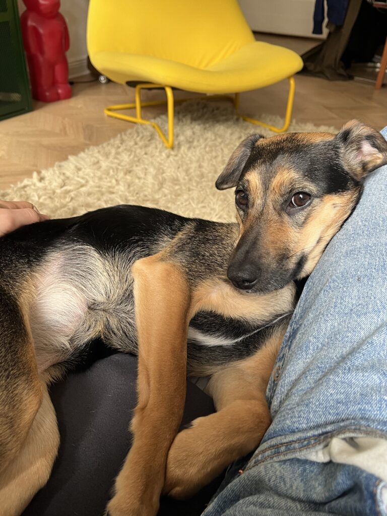 Wir haben Baghira Ende Juli 2023 mit 7 Monaten über einen Tierschutzverein aus der Slowakei bekommen, zuvor war sie in diversen anderen Zwischenstationen. Baghira ist sehr fixiert auf uns als ihre Bezugspersonen, unglaublich verschmust, intelligent und futtermotiviert. Sie beherrscht viele Kommandos, fährt toll im Auto mit und kann bis zu maximal 5,5 Stunden problemlos allein bleiben.
