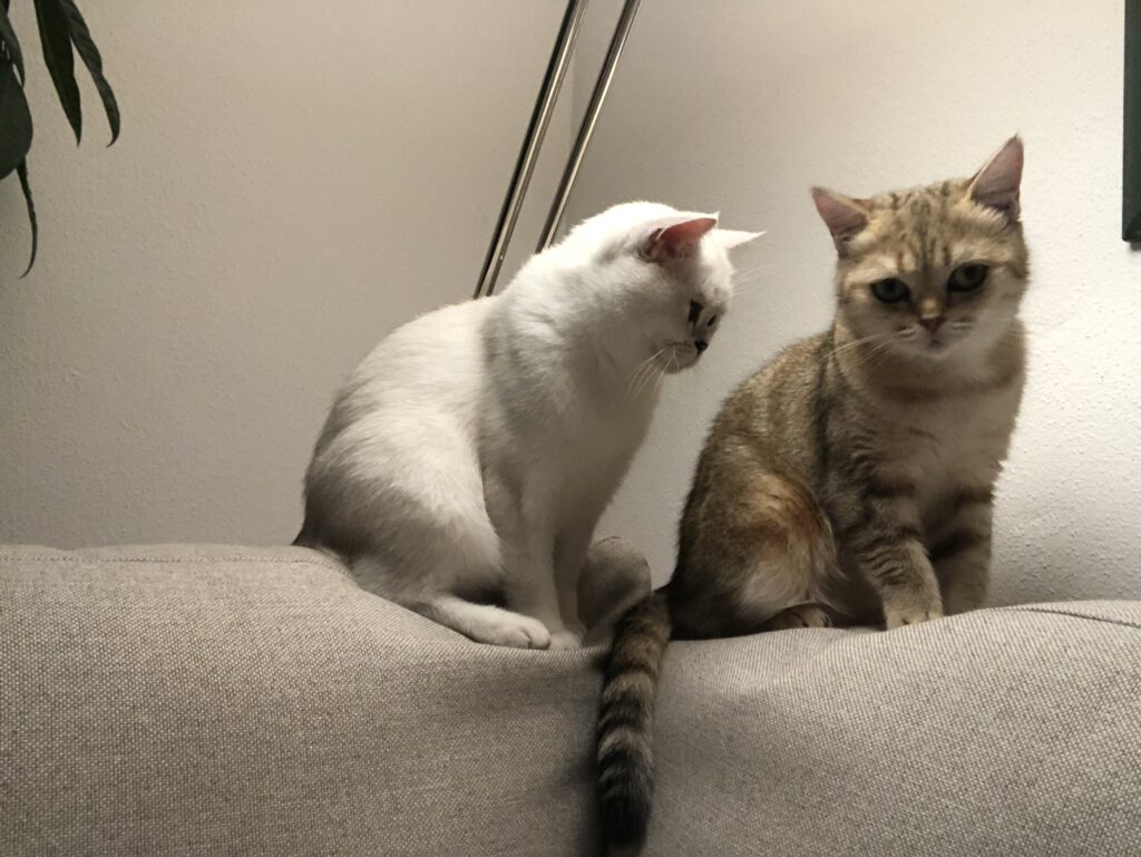 Mick (schwarz-weiß) mag keinen Stress. Also bitte niemanden mit weiteren Katzen oder Hunden. Dann fängt er an zu markieren. Nicht aufs Sofa oder ins Bett, aber auf Pullover oder Handtüchern in der Küche wenn die rumliegen.