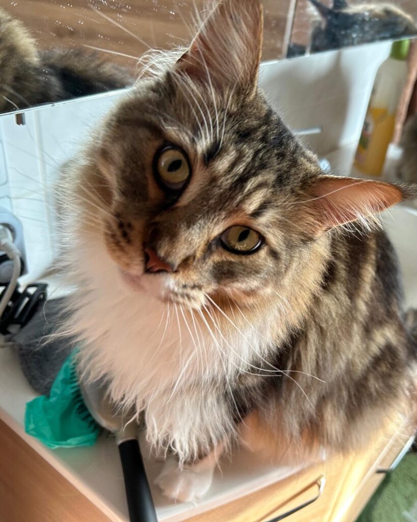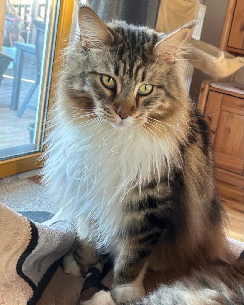 Wir haben Cooper im Oktober 2022 übernommen, als Zweitkatze zu unserem Maine Coon Mädel, weil deren Gefährtin überraschend verstorben war.